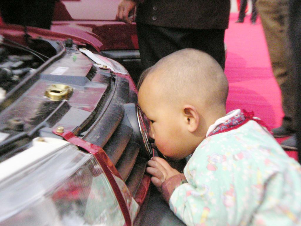 2001年8月23日,一位小伴侣对参展的汽车发生了稠密的乐趣。