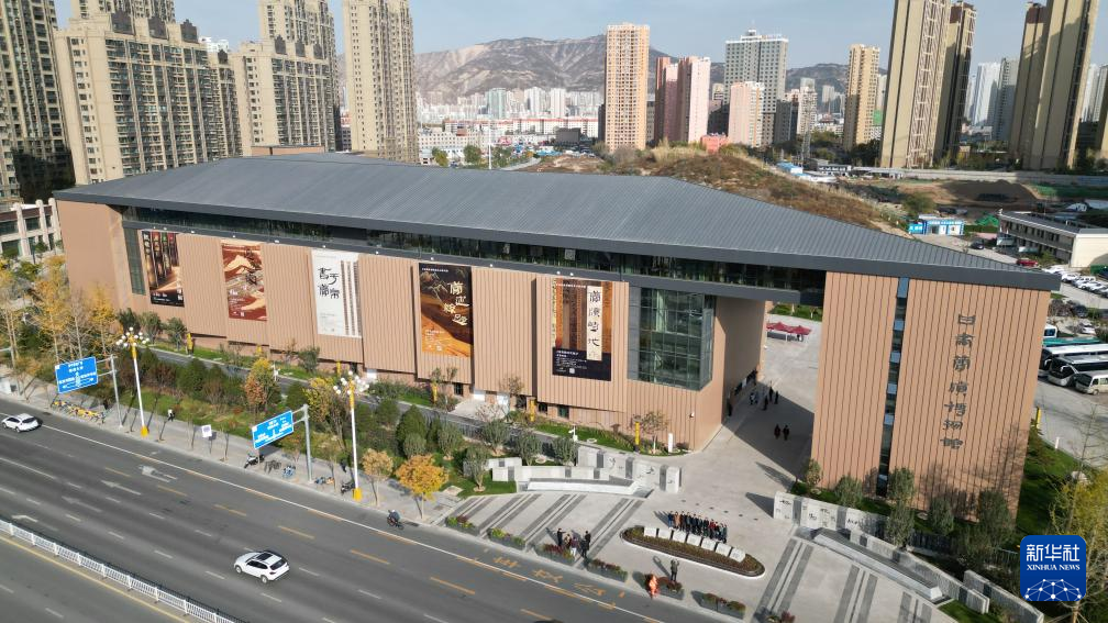 “配合扶植愈加夸姣的上海合做组织家园,搭乘鲁班工坊的机缘快车,”这是甘肃翰札博物馆外景(2023年11月3日摄,发(甘肃翰札博物馆供图)